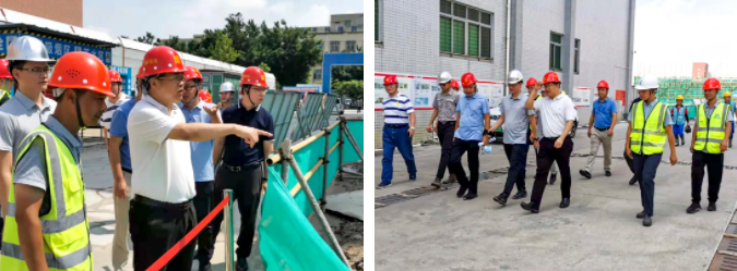 9月3日,東莞市城建局局長(zhǎng)朱默河到高埗五中項(xiàng)目檢查時(shí),要求抓好工程建設(shè)細(xì)節(jié),打造精品學(xué)校工程。匯華集團(tuán)副總經(jīng)理廖志峰陪同檢查。